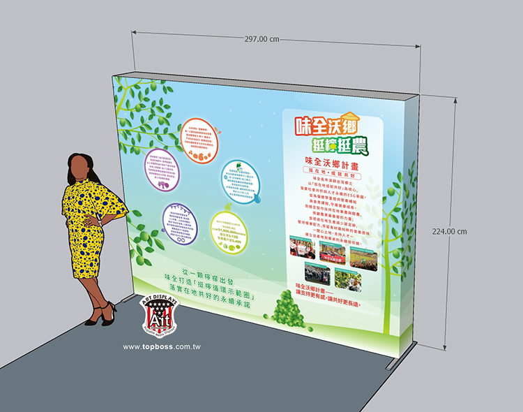 適用於各式店面促銷、展覽會場、活動佈置、婚禮佈置等場合使用~ 畫面升級彈性布後,免工具即可組裝,圖面完全無接縫,且取代之前膠板的沉重及磁吸的問題,印刷後的色彩層次解析度也達到一定的水準,不反光布皺褶是彈性布的特質,卡布組裝上更為容易,畫面安裝非常容易上手,畫面最寬300cm長度則無限 ,超過易可拚接~ 適用於: 展覽會場 記者會背景牆 大型活動背景牆 任何活動場地背景 百貨商場和大型飯店廣告牆 研討會議、品牌行銷、產品廣告.....等