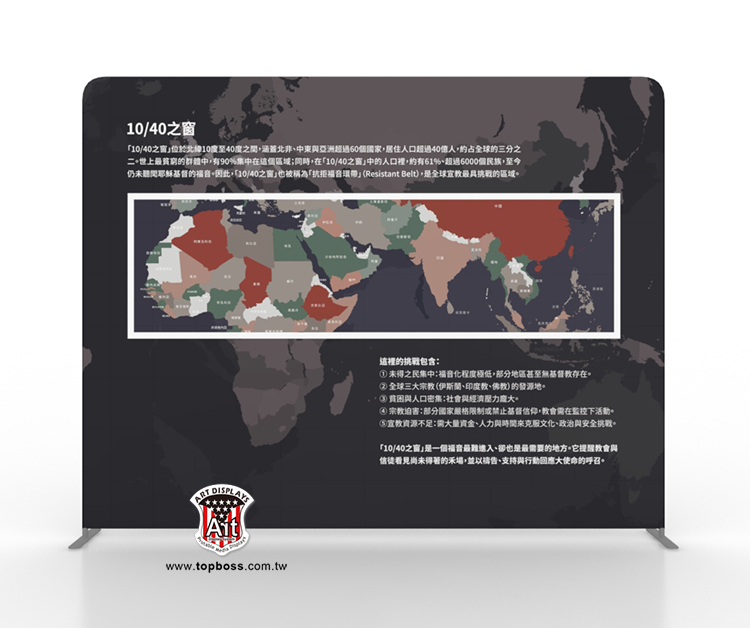 輕量且完全客製化的結構設計,高科技阻燃布,數位微噴設備(韓國D.gen)寬300公分無接縫,全國最大輸出尺寸,重複使用能取代木工裝潢的時間,節省拆除後的資源浪費,更能取代傳統制式鋁架拼接組合呆板的樣式!