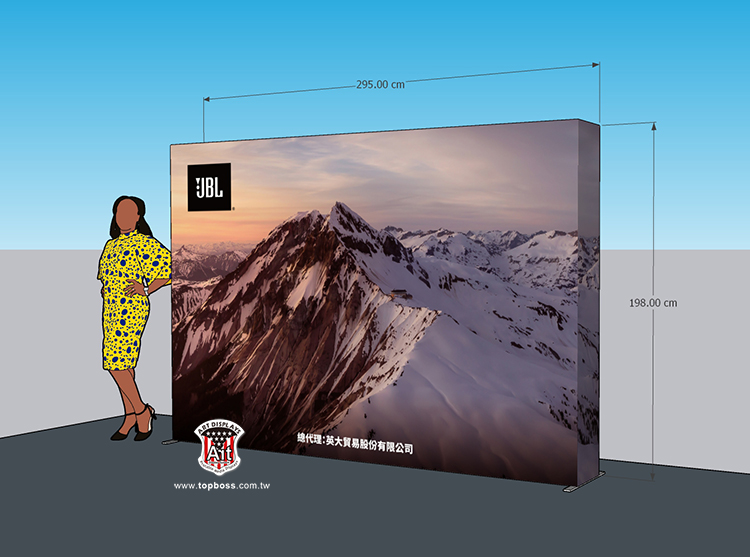 最新技術的拉網式卡布展屏 ,輕便的讓您難以置信集束成捆的網架 ,幾分鐘內彈起成一個大框架 ,既靈活又整潔,300cm高寬無接縫輸出 ,配合專用投射燈 ,令您的展品陳列光彩奪目 ,安裝簡易、無須任何工具;架身輕巧、易於攜帶;亦可自由組合及重覆使用,(若需現場安裝費用另計)。