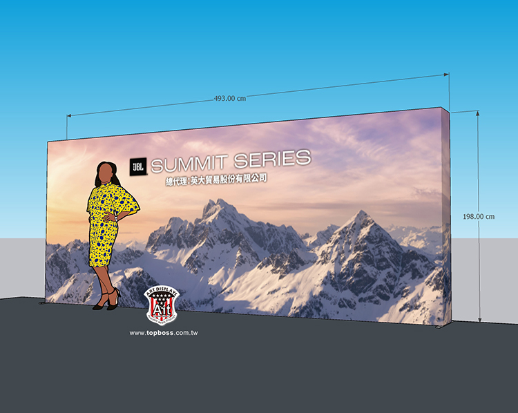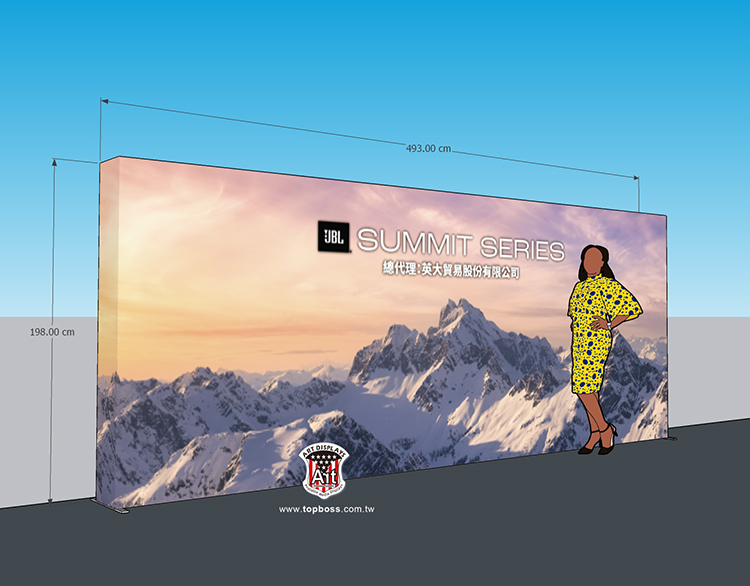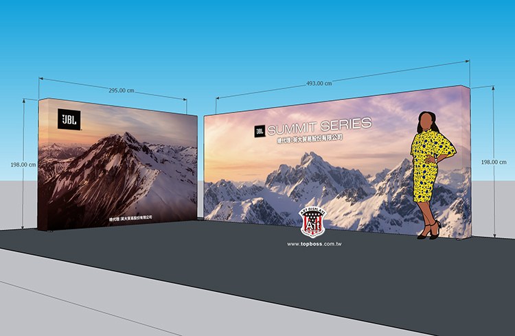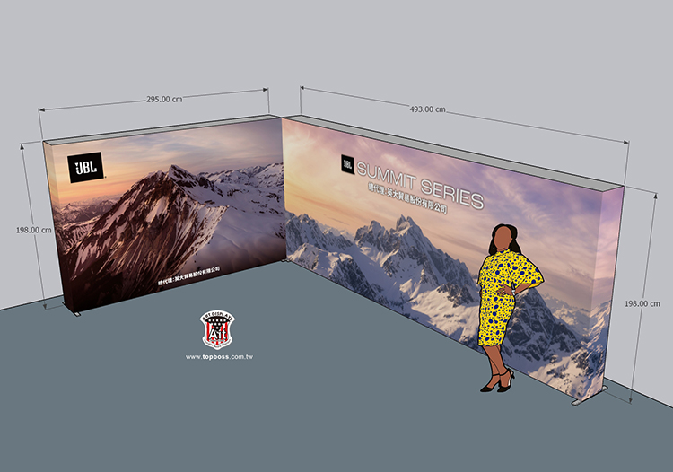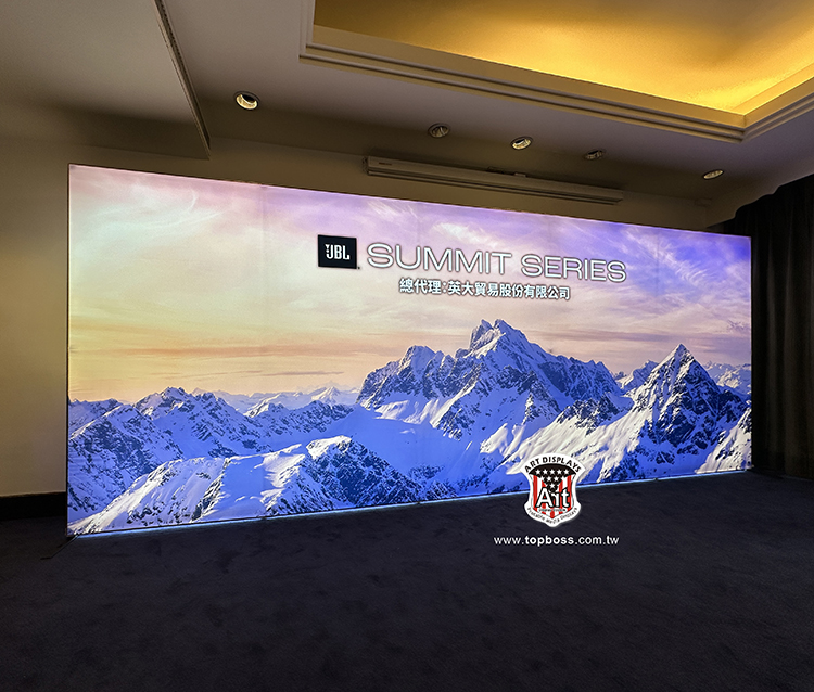 2023畫面升級後的重量僅剩十分之一 免工具即可組裝,畫面300cm高寬,完全可無接縫,不反光不皺褶是彈性布的產品特性,品牌展示牆兼具拍攝用背景超適合~