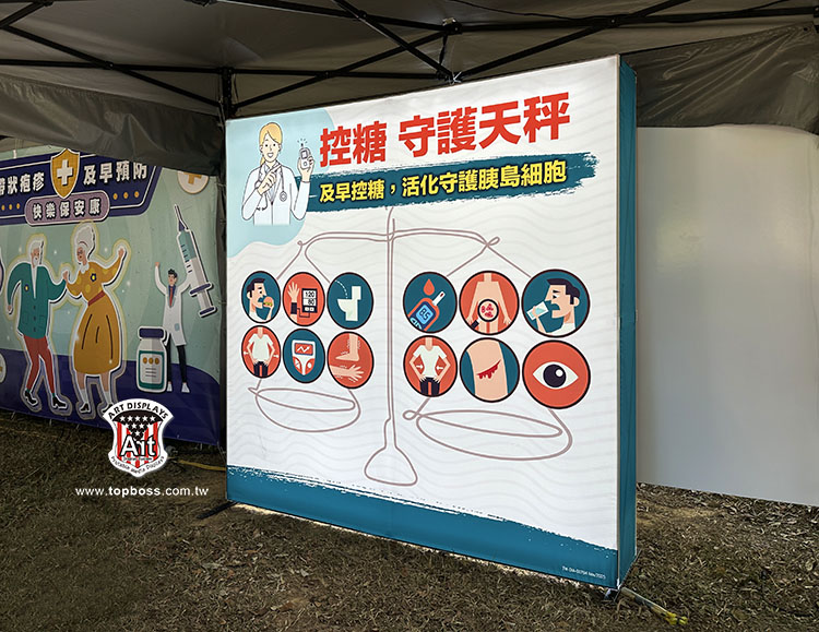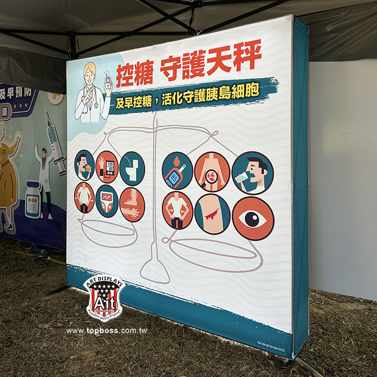 最新技術的拉網式卡布展屏 ,輕便的讓您難以置信集束成捆的網架 ,幾分鐘內彈起成一個大框架 ,既靈活又整潔,300cm高寬無接縫輸出 ,配合專用投射燈 ,令您的展品陳列光彩奪目 ,安裝簡易、無須任何工具;架身輕巧、易於攜帶;亦可自由組合及重覆使用,(若需現場安裝費用另計)。