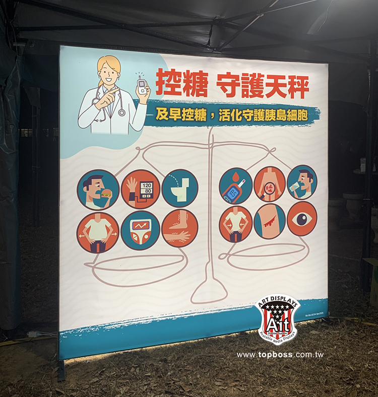 可選擇有: (一) 內打燈(LED燈箱) (二) 外打燈 頂燈方式