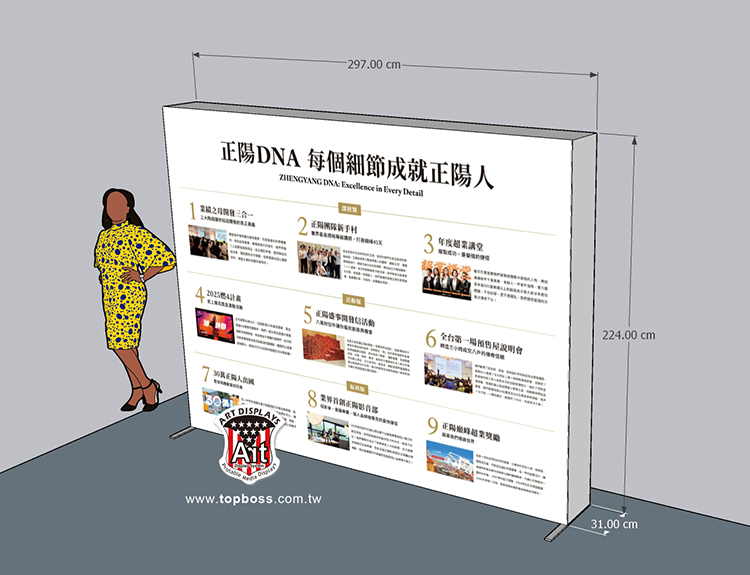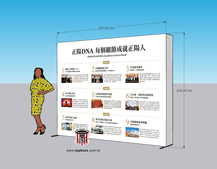 2023畫面升級後的重量僅剩十分之一 免工具即可組裝,畫面300cm高寬,完全可無接縫,不反光不皺褶是彈性布的產品特性,品牌展示牆兼具拍攝用背景超適合~