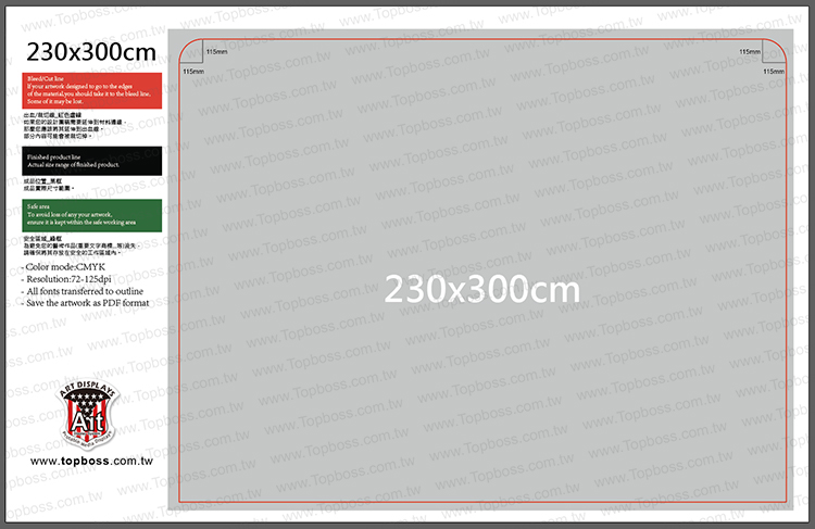 ※ 尺寸部分:與輸出的尺寸同樣大小(1:1)之檔案,例230x300cm (解析度150)918MB以上。