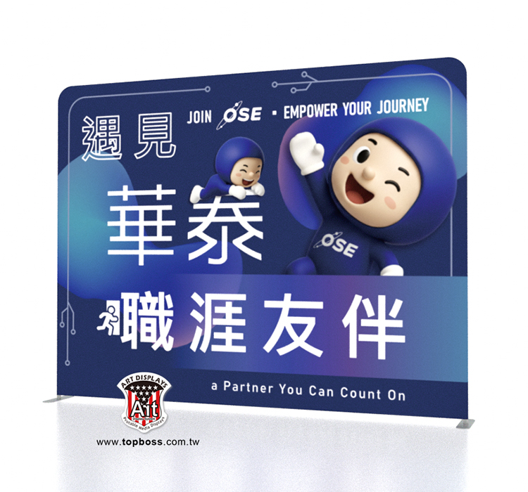 輕量且完全客製化的結構設計,高科技阻燃布,數位微噴設備(韓國D.gen)寬300公分無接縫,全國最大輸出尺寸,重複使用能取代木工裝潢的時間,節省拆除後的資源浪費,更能取代傳統制式鋁架拼接組合呆板的樣式!