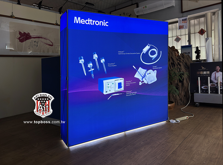 最新技術的拉網式卡布展屏 ,輕便的讓您難以置信集束成捆的網架 ,幾分鐘內彈起成一個大框架 ,既靈活又整潔,300cm高寬無接縫輸出 ,配合專用投射燈 ,令您的展品陳列光彩奪目 ,安裝簡易、無須任何工具;架身輕巧、易於攜帶;亦可自由組合及重覆使用,(若需現場安裝費用另計)。
