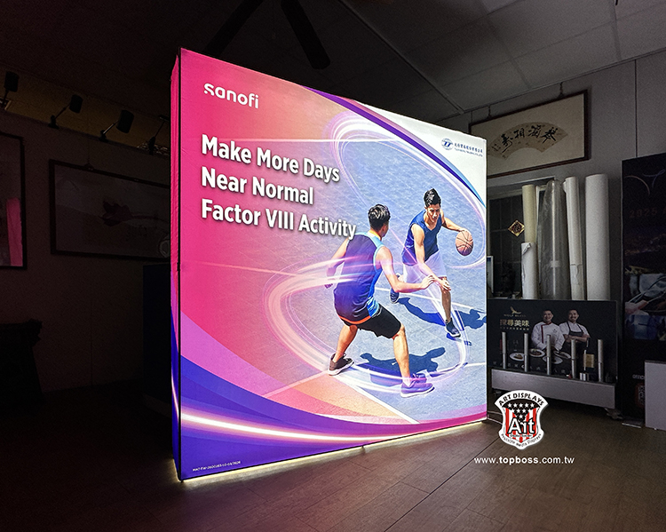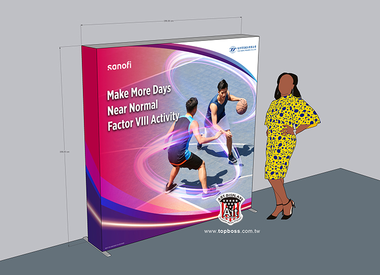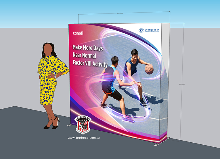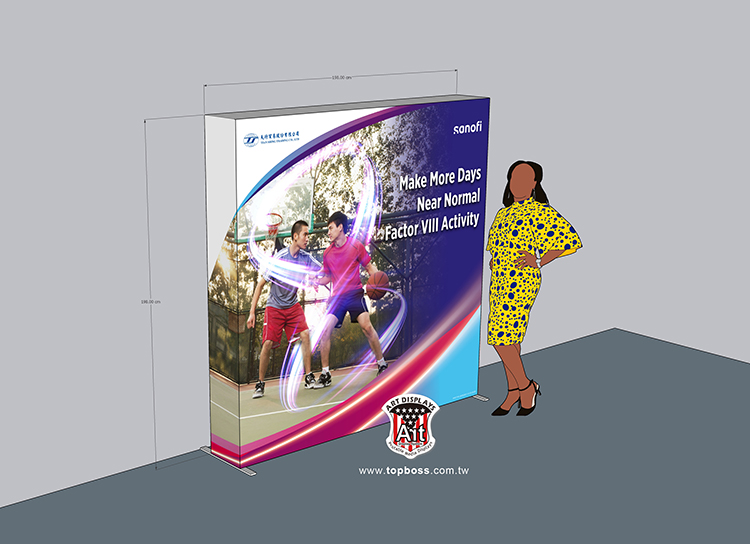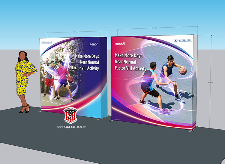 最新技術的拉網式卡布展屏 ,輕便的讓您難以置信集束成捆的網架 ,幾分鐘內彈起成一個大框架 ,既靈活又整潔,300cm高寬無接縫輸出 ,配合專用投射燈 ,令您的展品陳列光彩奪目 ,安裝簡易、無須任何工具;架身輕巧、易於攜帶;亦可自由組合及重覆使用,(若需現場安裝費用另計)。