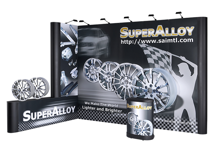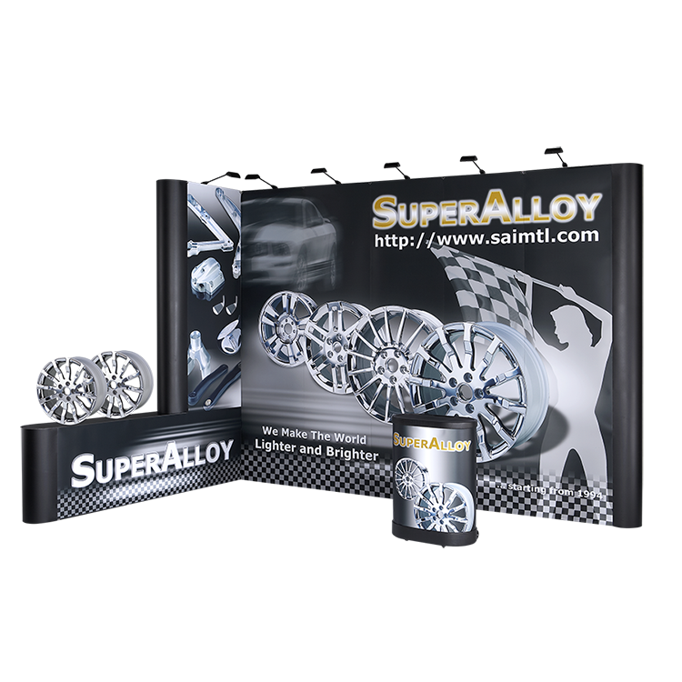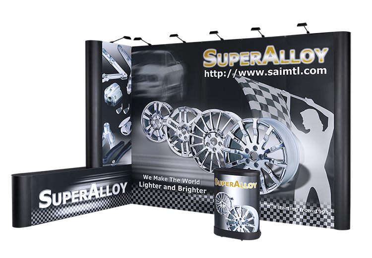 產品特性: 最新技術的拉網式展屏,輕便的讓您難以置信集束成捆的網架,幾分鐘內彈起成一個大框架.既靈活又整潔,採用特製磁吸貼畫技術,配合專用投射燈,令您的展品陳列光彩奪目