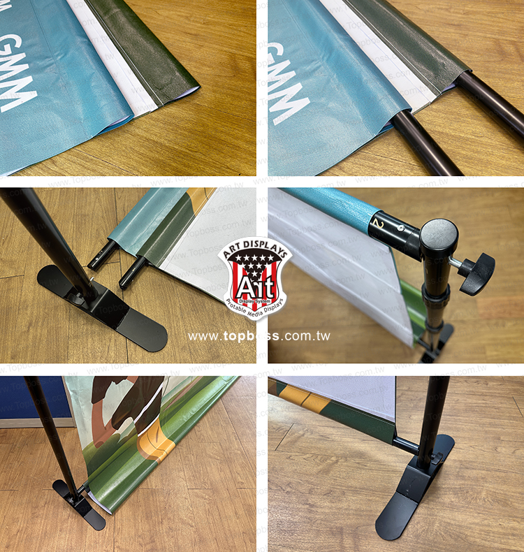 產品特性:伸縮調整大型海報廣告看板,展易萬能架可重覆換海報使用,高度寬度皆可自行調整配合輸出尺寸,是大型海報的宣傳好幫手。