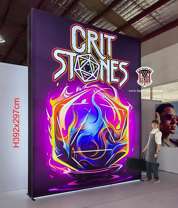 2023畫面升級後的重量僅剩十分之一 免工具即可組裝,畫面300cm高寬,完全可無接縫,不反光不皺褶是彈性布的產品特性,品牌展示牆兼具拍攝用背景超適合~