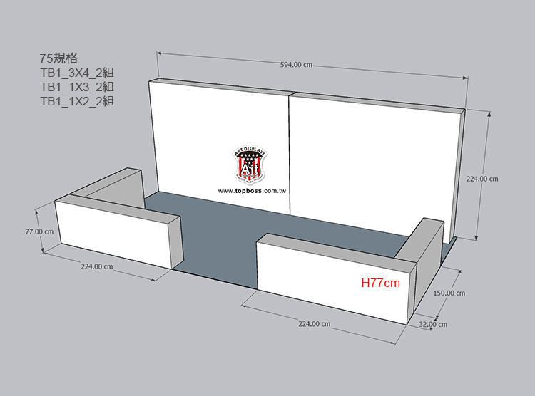 14/+ 腳1/+燈2/ (主畫面)= 20kg  x 1 (主畫面224x597cm)