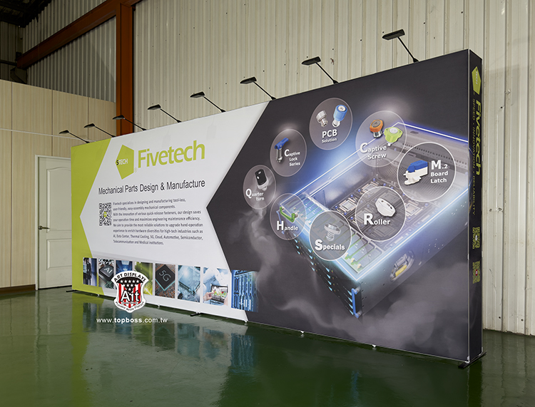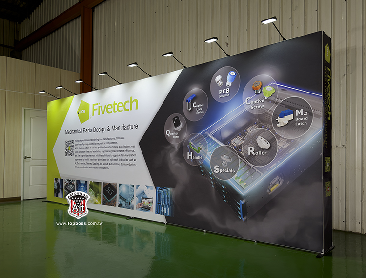 最新技術的拉網式卡布展屏 ,輕便的讓您難以置信集束成捆的網架 ,幾分鐘內彈起成一個大框架 ,既靈活又整潔,300cm高寬無接縫輸出 ,配合專用投射燈 ,令您的展品陳列光彩奪目 ,安裝簡易、無須任何工具;架身輕巧、易於攜帶;亦可自由組合及重覆使用,(若需現場安裝費用另計)。