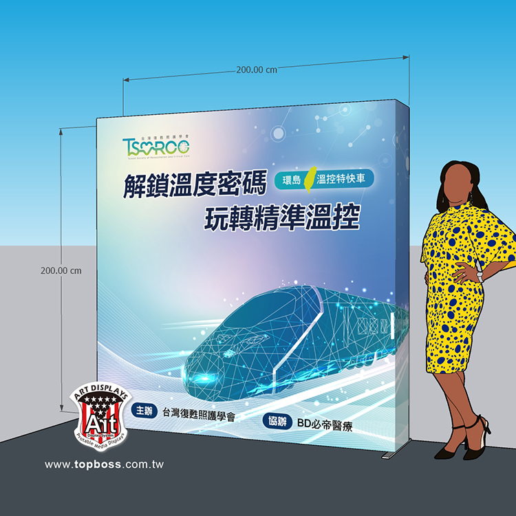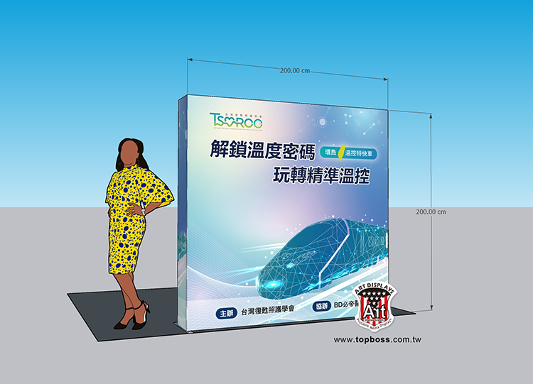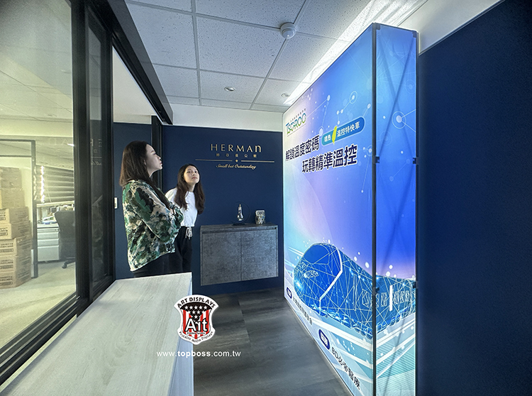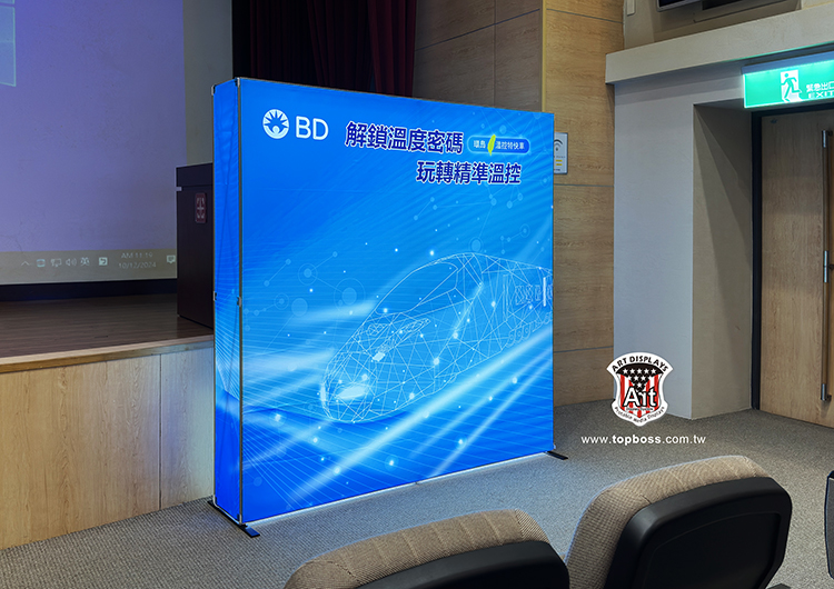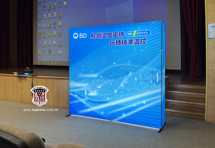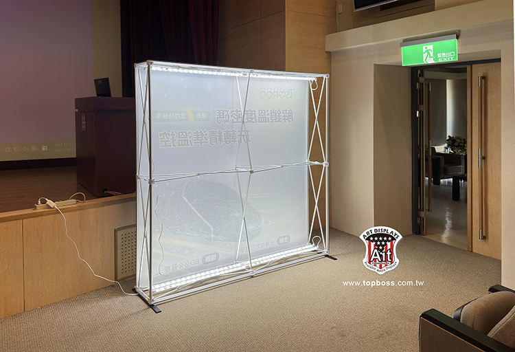 最新技術的拉網式卡布展屏 ,輕便的讓您難以置信集束成捆的網架 ,幾分鐘內彈起成一個大框架 ,既靈活又整潔,300cm高寬無接縫輸出 ,配合專用投射燈 ,令您的展品陳列光彩奪目 ,安裝簡易、無須任何工具;架身輕巧、易於攜帶;亦可自由組合及重覆使用,(若需現場安裝費用另計)。