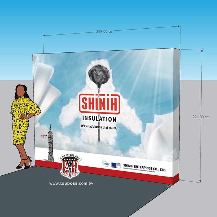 2023畫面升級後的重量僅剩十分之一 免工具即可組裝,畫面300cm高寬,完全可無接縫,不反光不皺褶是彈性布的產品特性,品牌展示牆兼具拍攝用背景超適合~