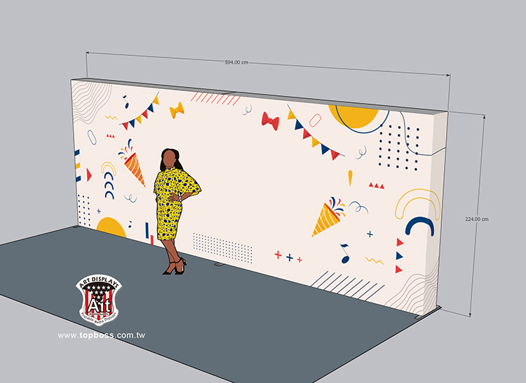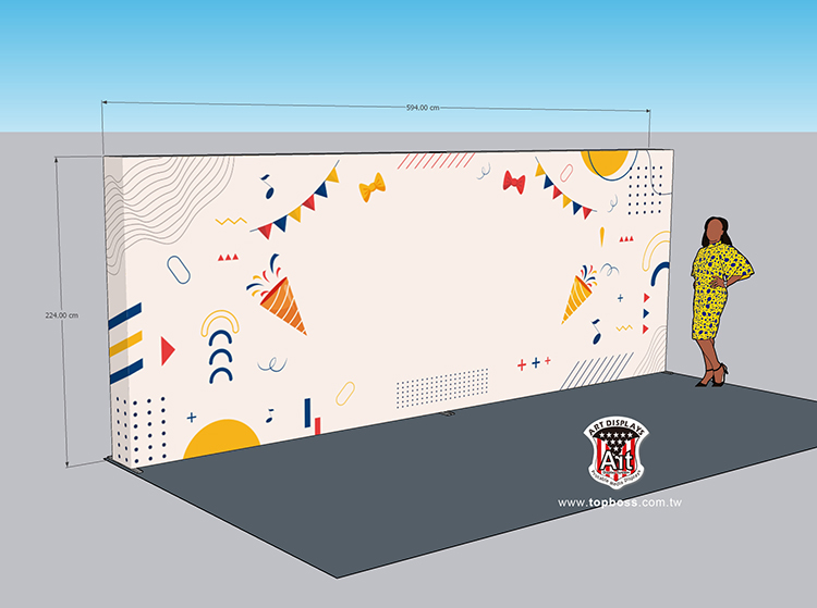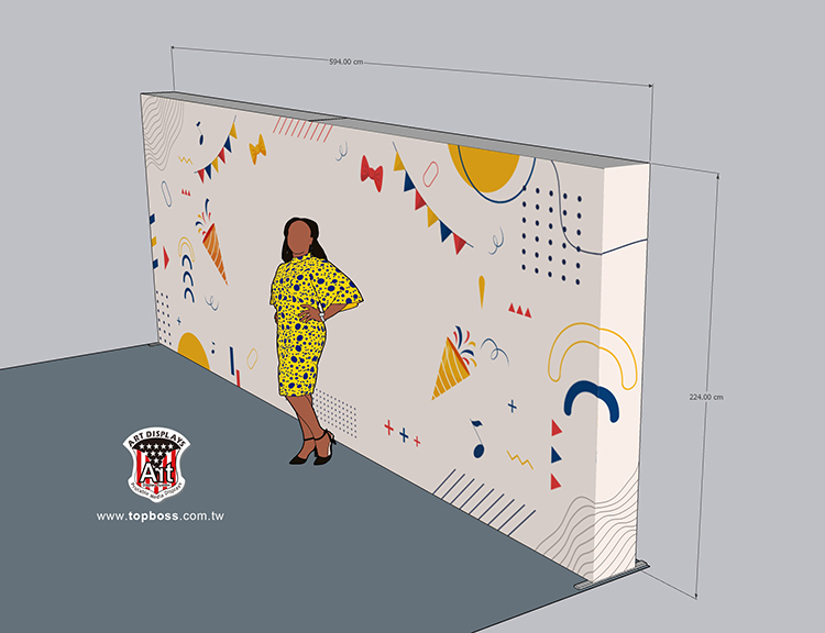 2023畫面升級後的重量僅剩十分之一 免工具即可組裝,畫面300cm高寬,完全可無接縫,不反光不皺褶是彈性布的產品特性,品牌展示牆兼具拍攝用背景超適合~