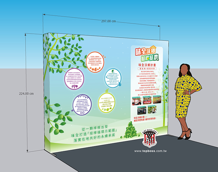最新技術的拉網式卡布展屏 ,輕便的讓您難以置信集束成捆的網架 ,幾分鐘內彈起成一個大框架 ,既靈活又整潔,300cm高寬無接縫輸出 ,配合專用投射燈 ,令您的展品陳列光彩奪目 ,安裝簡易、無須任何工具;架身輕巧、易於攜帶;亦可自由組合及重覆使用,(若需現場安裝費用另計)。