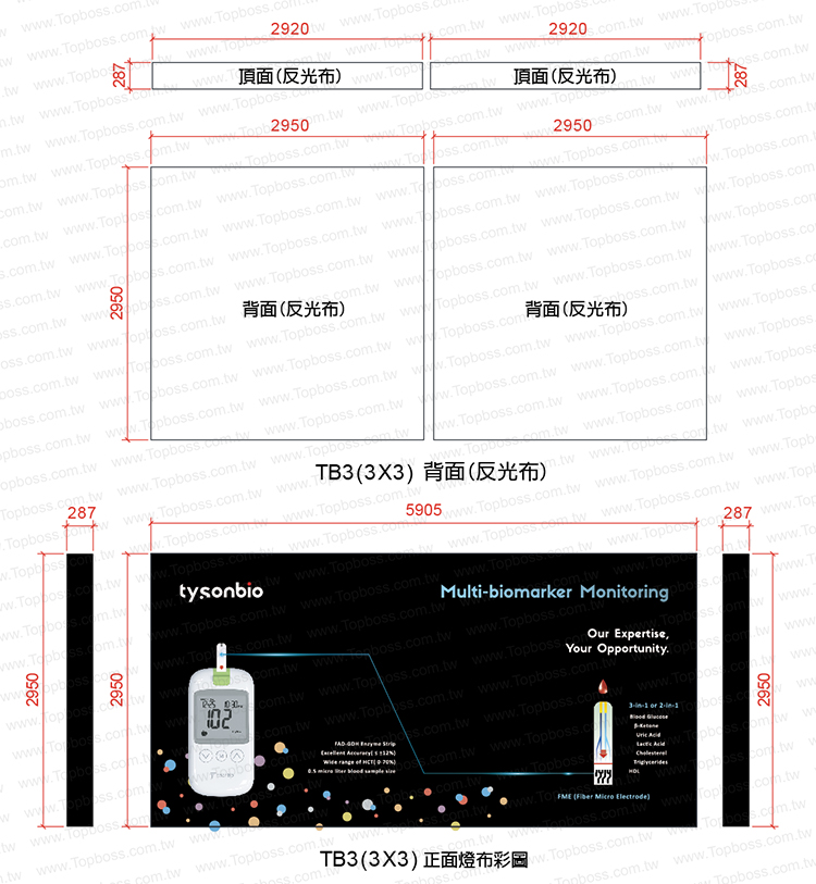 頂部尺寸:W2920x H287mm (銀色反光布)