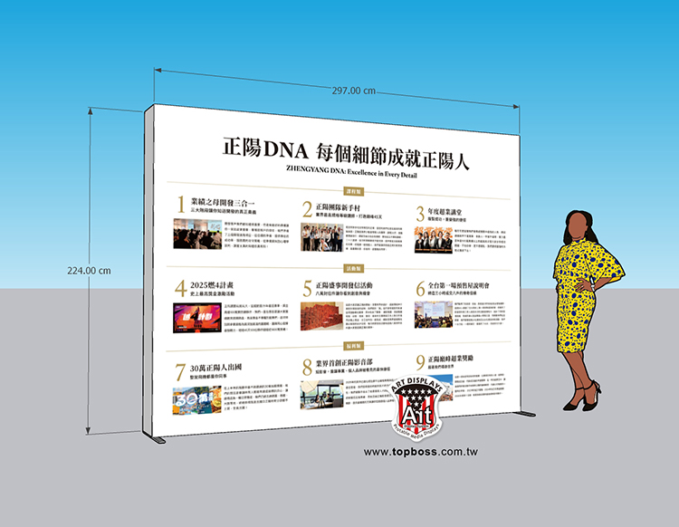 2023畫面升級後的重量僅剩十分之一 免工具即可組裝,畫面300cm高寬,完全可無接縫,不反光不皺褶是彈性布的產品特性,品牌展示牆兼具拍攝用背景超適合~