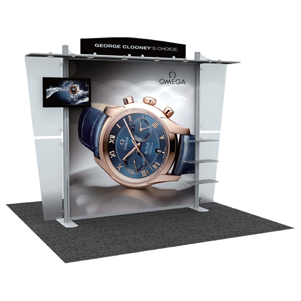 但是在展位的正面和背面可能會使用剛性面板。這個 Magic-window系統將定制模組化解決方案發展成一個可提供高達 30'x30“展位系統。Magic-window 解決方案非常適合國際大型展會,特殊活動裝飾和銷售點展示。