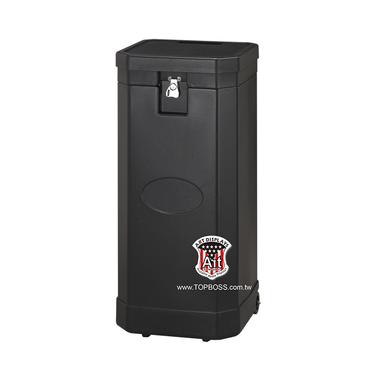 產品特性︰利用一個帶輪多功能航空拉桿包,加上膠板加工而成簡易形櫃台,桌板收起時可置入拉桿包,節省攜帶之空間,畫面可用輸出方式或卡點西得加工。
