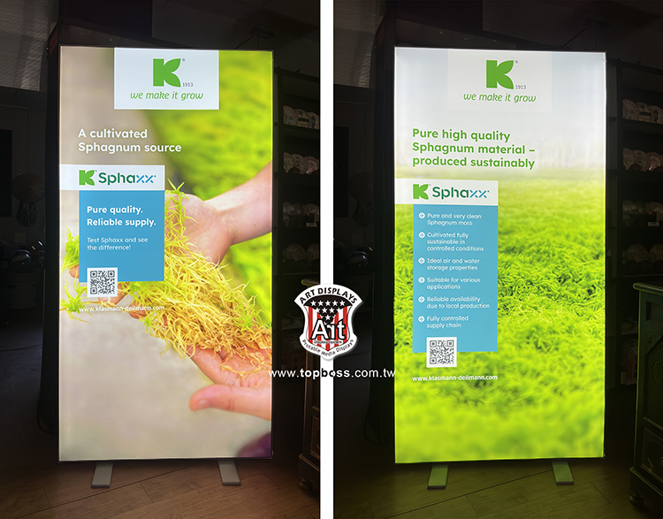 ※ 產品設計為携帶組合式燈箱,收納運送尺寸長度為140cm,鋁材重量約為22kg,一般轎車即可運送,前置畫面為背打光無接縫阻燃燈布,後置為黑白遮光布易於攜帶,畫面摺疊展開後平整無摺痕,LED打光後讓您的廣告畫面光彩奪目~