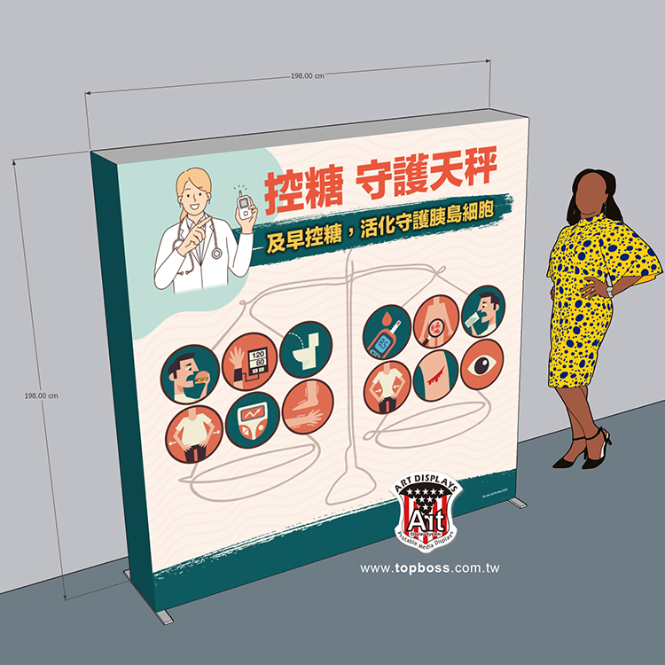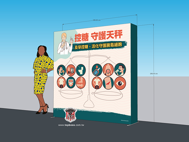 最新技術的拉網式卡布展屏 ,輕便的讓您難以置信集束成捆的網架 ,幾分鐘內彈起成一個大框架 ,既靈活又整潔,300cm高寬無接縫輸出 ,配合專用投射燈 ,令您的展品陳列光彩奪目 ,安裝簡易、無須任何工具;架身輕巧、易於攜帶;亦可自由組合及重覆使用,(若需現場安裝費用另計)。