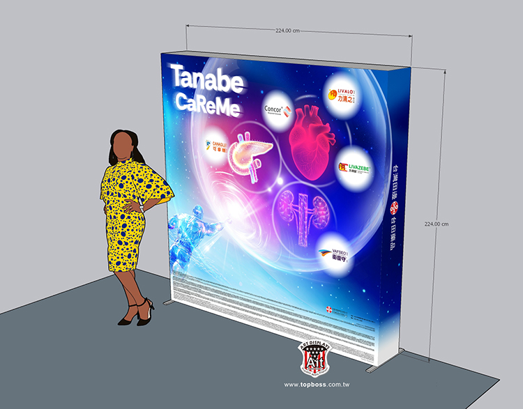 最新技術的拉網式卡布展屏 ,輕便的讓您難以置信集束成捆的網架 ,幾分鐘內彈起成一個大框架 ,既靈活又整潔,300cm高寬無接縫輸出 ,配合專用投射燈 ,令您的展品陳列光彩奪目 ,安裝簡易、無須任何工具;架身輕巧、易於攜帶;亦可自由組合及重覆使用,(若需現場安裝費用另計)。